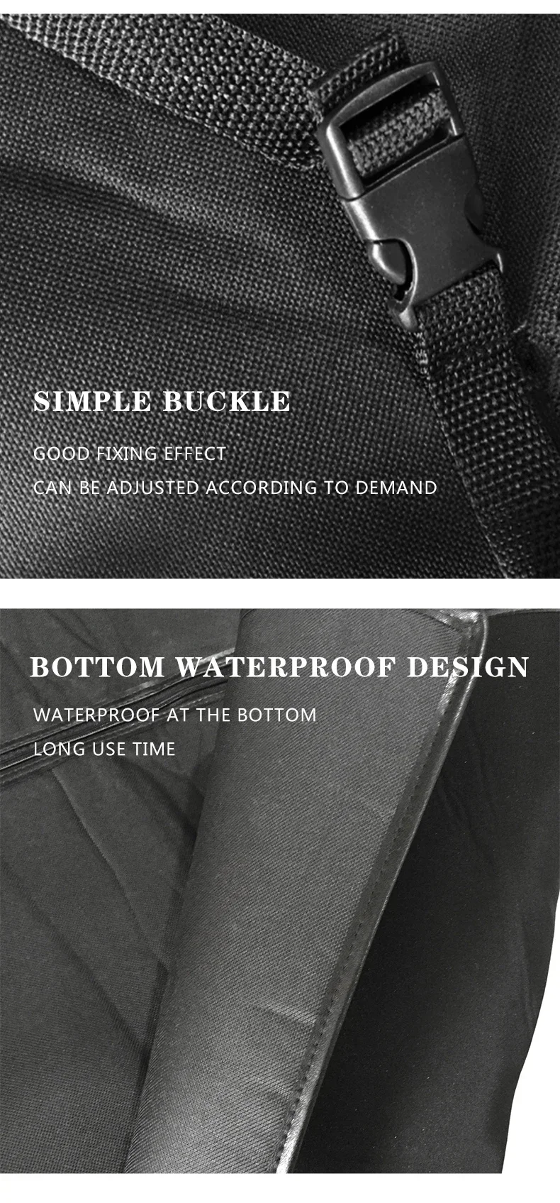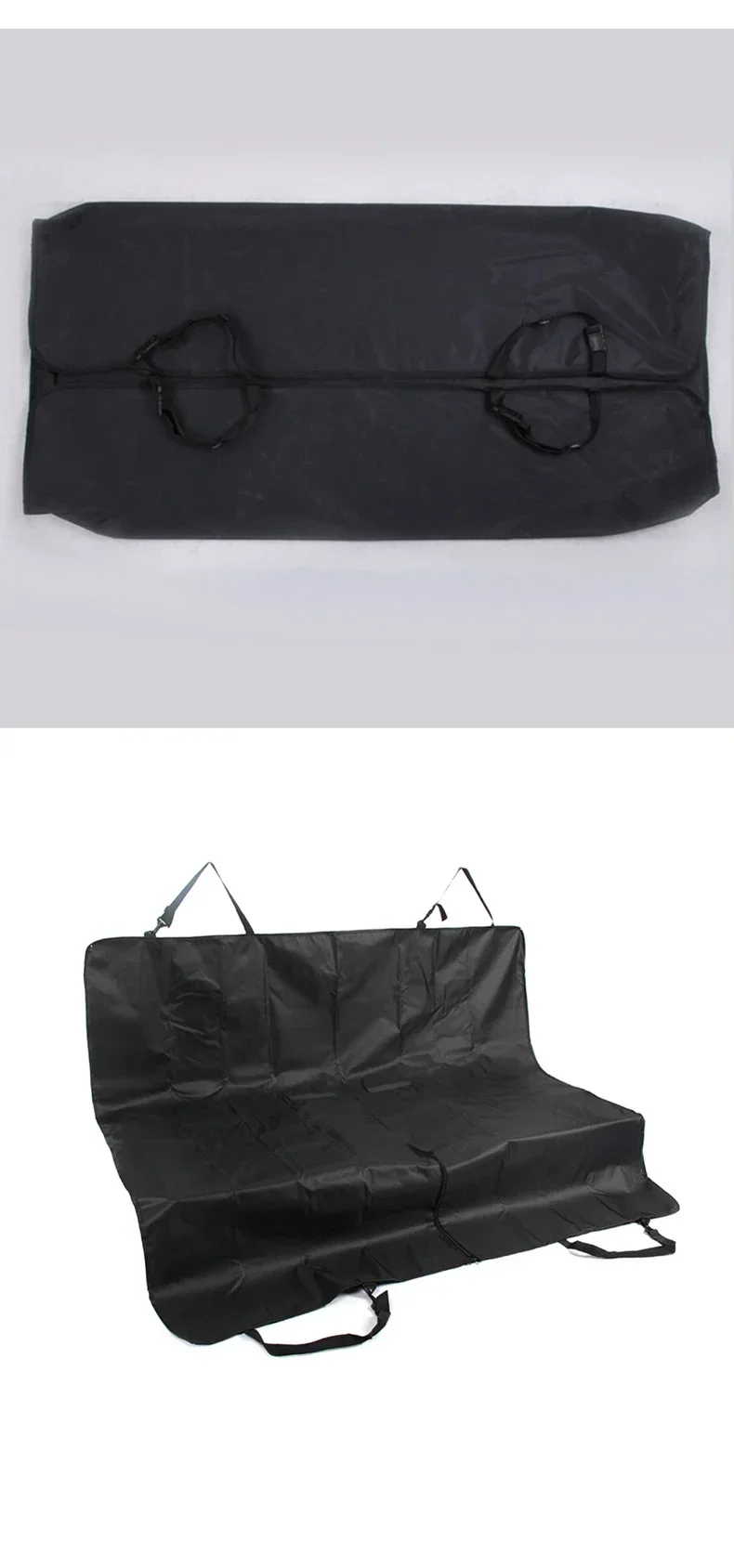 Foldable Waterproof car back seat cover,With two plastic pipes for convenient to install in the carWith inside pocket for holding your stuff or toysNon-slip backings and adjustable straps provide a secure fitprotect your leather or velour seats from pet hair, drool, dust and dirt while travelingInstalls easily – simply set on the seat, attach the buckle enclosure around the headrest, pull thru the seat belts and tuck in the sidesWashable and waterproof