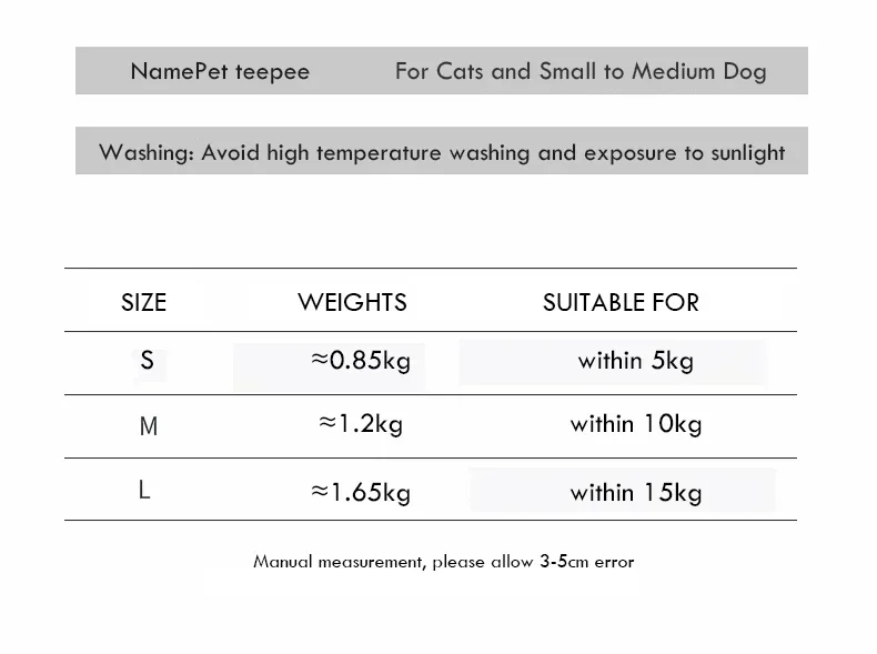 S: 4 corner tent: suitable for dogs within 5kg and most cats
